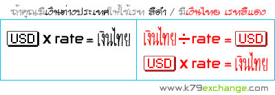 - หากท่านต้องการทราบอัตราแลกเปลี่ยนที่แน่นอน สามารถสอบถามอัตราแลกเปลี่ยนล่าสุดได้ที่ : โทร (66) 065-116-6285